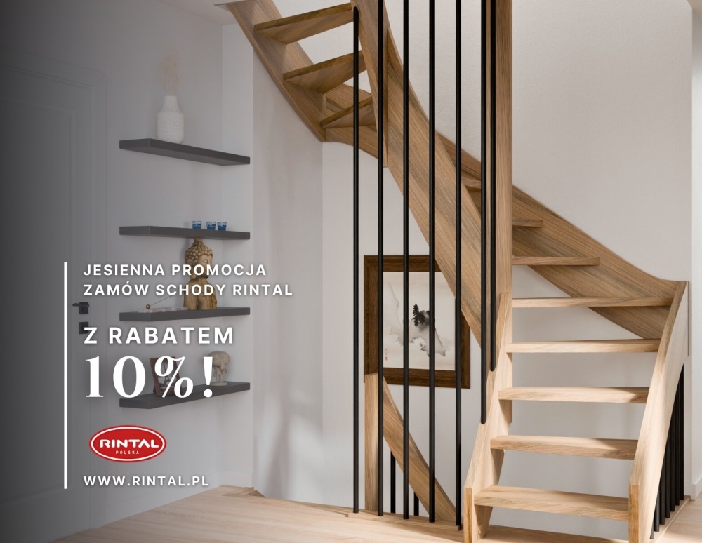 Tylko teraz, przez ograniczony czas, możesz skorzystać z wyjątkowej promocji Rintal: rabat 10% na wszystkie modele schodów zamówione w komplecie z balustradami i montażem.